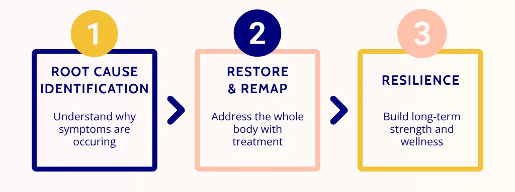 We start by identifying what’s really causing your symptoms. The pelvic floor is usually a victim. It's where we are seeing the breakdown. But, this means we have to look outside the pelvis to find out what's really going on.